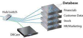 DBCare will monitor performance, host, space, audit, resources, and security events. DBCare automatically sends alerts, warnings, and system status to customer's wireless devices, and email addresses. This plug and play appliance does not reside on your server nor does it take up valuable system resources in performing its monitoring duties.